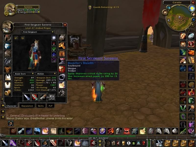 Ez a szintén sokak által gyengének és használhatatlannak titulált képesség két dolog miatt erős: egyik a mérhetetlenül gyors cp generálás, másik, hogy 70es szinten a crit % a béka segge alatt lesz, egy full t3as 35%-os crittel rendelkező rugo 67es szinten 22-23% crittel mászkál, ilyen arányoknál mutilate >>> backstab. Igaz, két lassú tőr kell hozzá és az áldozatnak mérgezettnek kell lenni, de mutilate builddel a CS lejárta előtt biztosan felkerül a méreg és akkor már full dmg-t ad a mutilate, ráadásul mindkét tőrről egyidejüleg felrakja a mérgeket. Mutilate mellett pedig a combat ág teljesen kihagyható, gouge is, mutilate buildnek érdemes deadlyvel és criplinggel mászkálni pvp-ben, dual deadly solo pve-ben. Azon kívül a két fegyvernek külön számolja a critet, így 25%-os crit mellett is lesz nagyjából 45% arra, hogy a seal fate bejön, a dual crit pedig khm, full epik gearben 3,5-4k critet jelent. Remélem, nem fogják nerfelni. :) Jah, amúgy mutilate buildhez AP>crit, de csak mértékkel. ;)